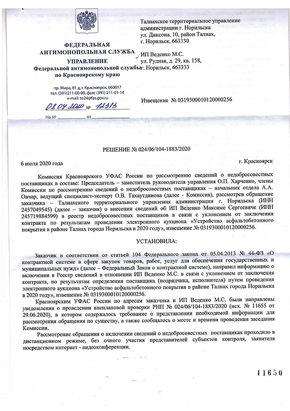 Решение УФАС Москва по делу №077/10/19-6150/2020